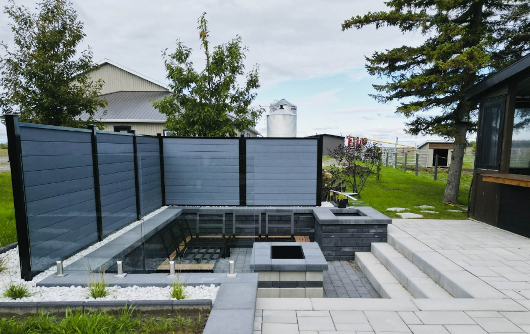 Entrée de maison, terrasse, trottoir ou contour de piscine : nous réalisons des aménagements extérieurs raffinés, pensés pour rehausser le cachet et la valeur de votre propriété.